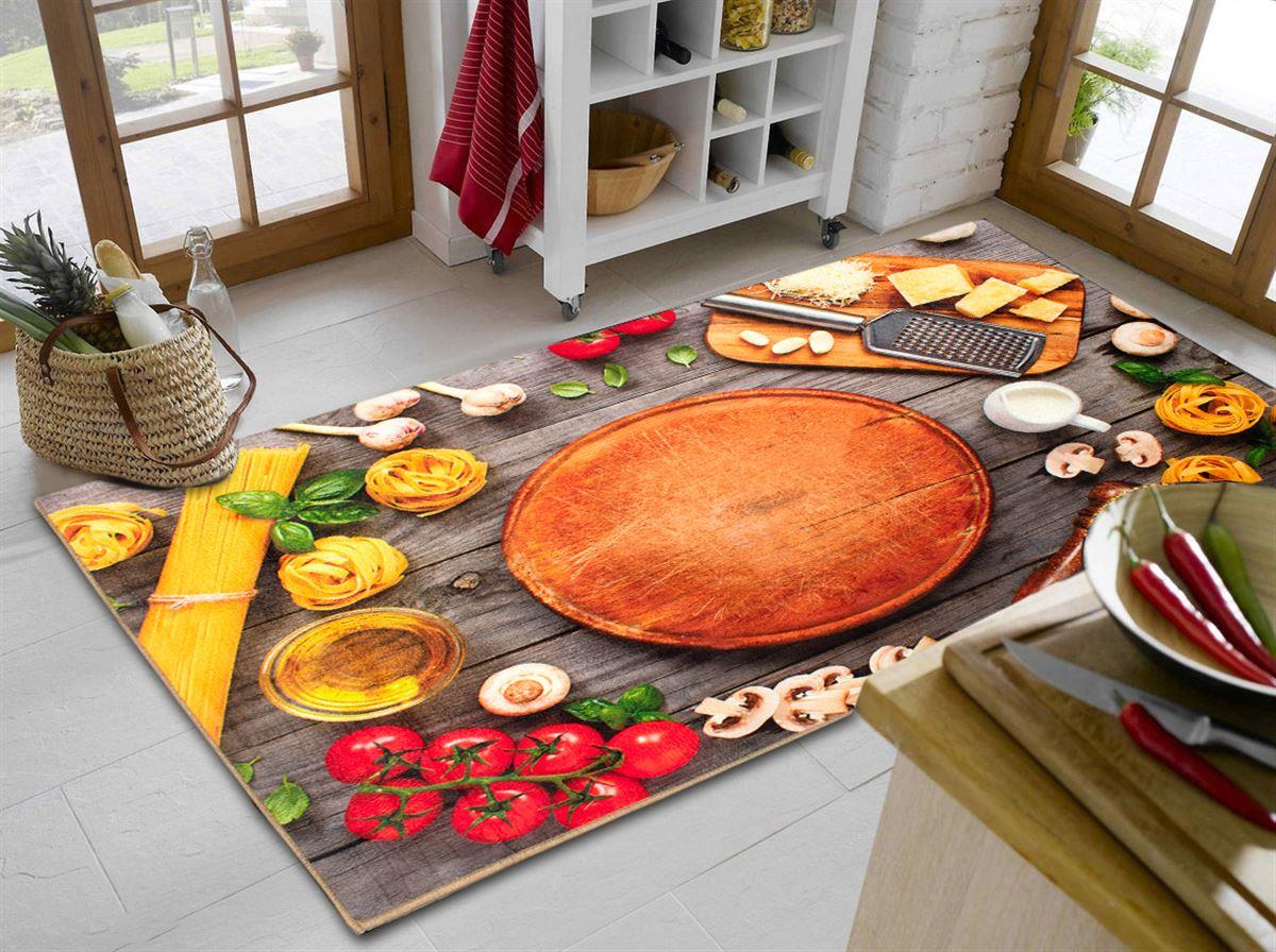 Χαλάκι κουζίνας διαστάσεων 80X200 cm, με αντιολισθητικό επίστρωμα Dots Backing και απεικόνιση υλικών για spaghetti. Πρακτικό, ασφαλές, αλλά και διακοσμητικό για τη κουζίνα του σπιτιού σας. Συσκευασία Polybag.