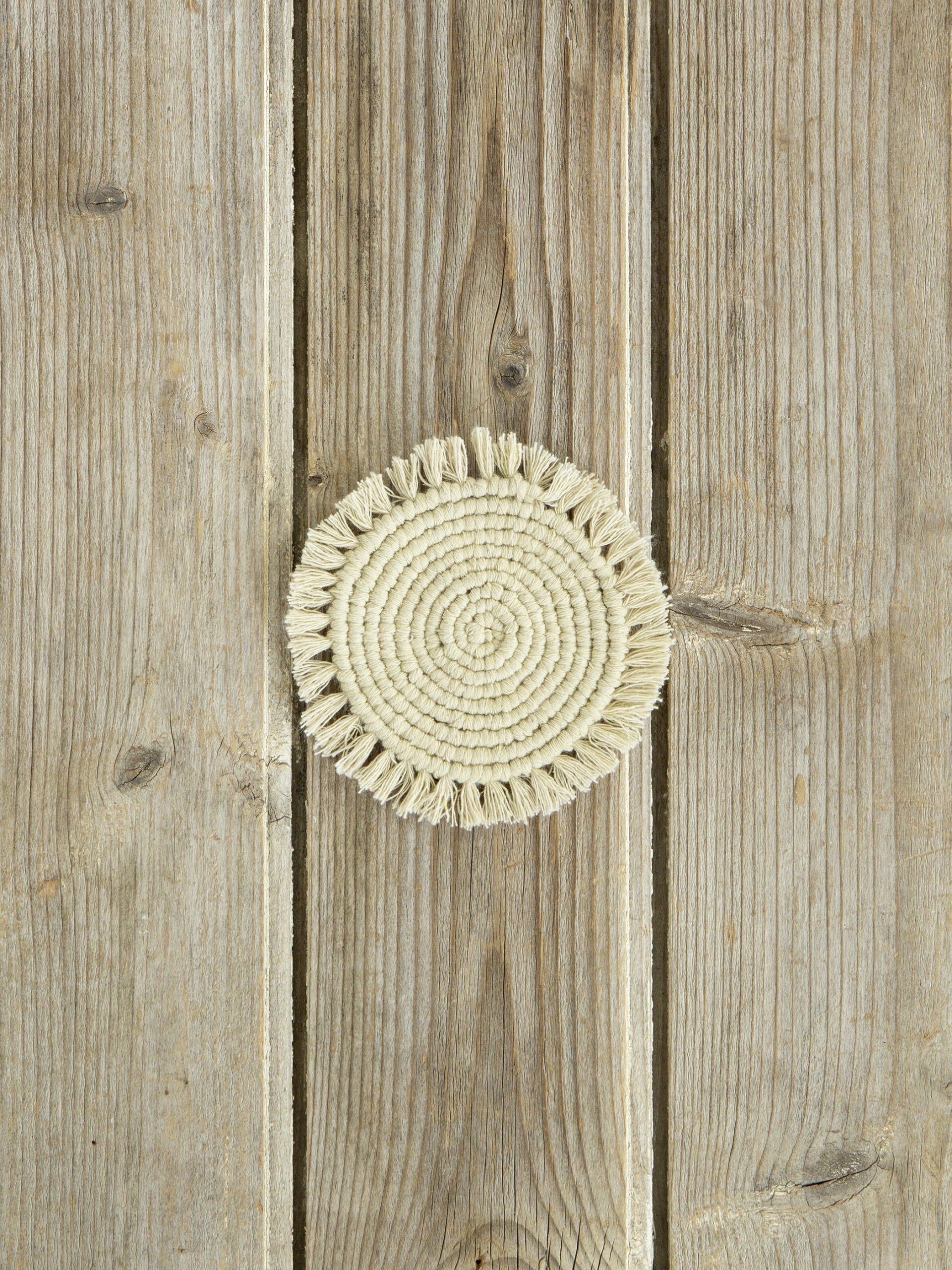 Στρογγυλό σουβέρ με σύνθεση από 100% βαμβακερά νήματα. Ένα όμορφο χειροποίητο σουβέρ με ιδιαίτερη κατασκευή που τελειώνει περιμετρικά σε όμορφα κρόσια. Είναι απόλυτα χρηστικό, καθώς είναι Ιδανικό για να προστατεύσετε από τα "αποτυπώματα" των ποτηριών ή μπουκαλιών το τραπέζι σας. Μπορεί να ταιριάξουν με όλα τα στιλ επίπλων και διακόσμησης.