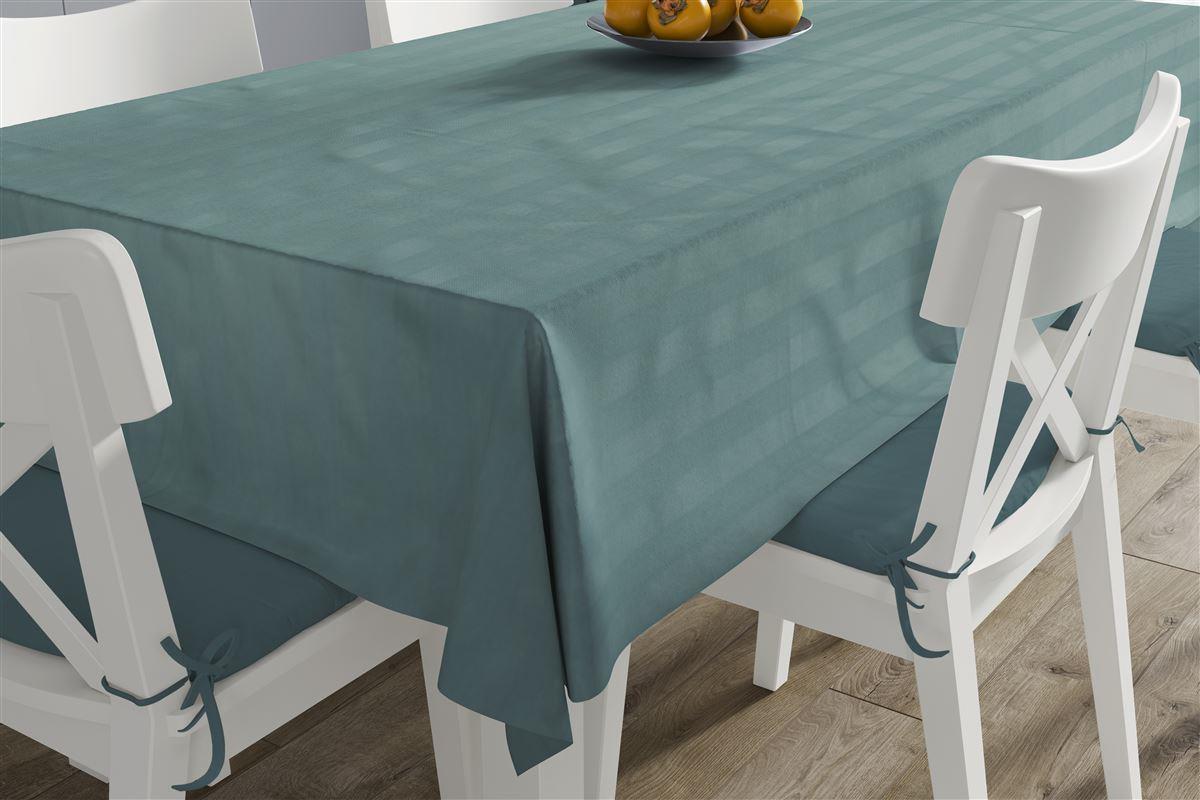 Μονόχρωμο τραπεζομάντηλο διαστάσεων 140X140 cm με ζακάρ ριγέ σχέδιο. Κατασκευασμένο από 100% οικολογικό βαμβάκι με ανεξίτηλα νήματα εξαιρετικής αντοχής ακόμα και στους 90°C για τους πιο απαιτητικούς καταναλωτές.