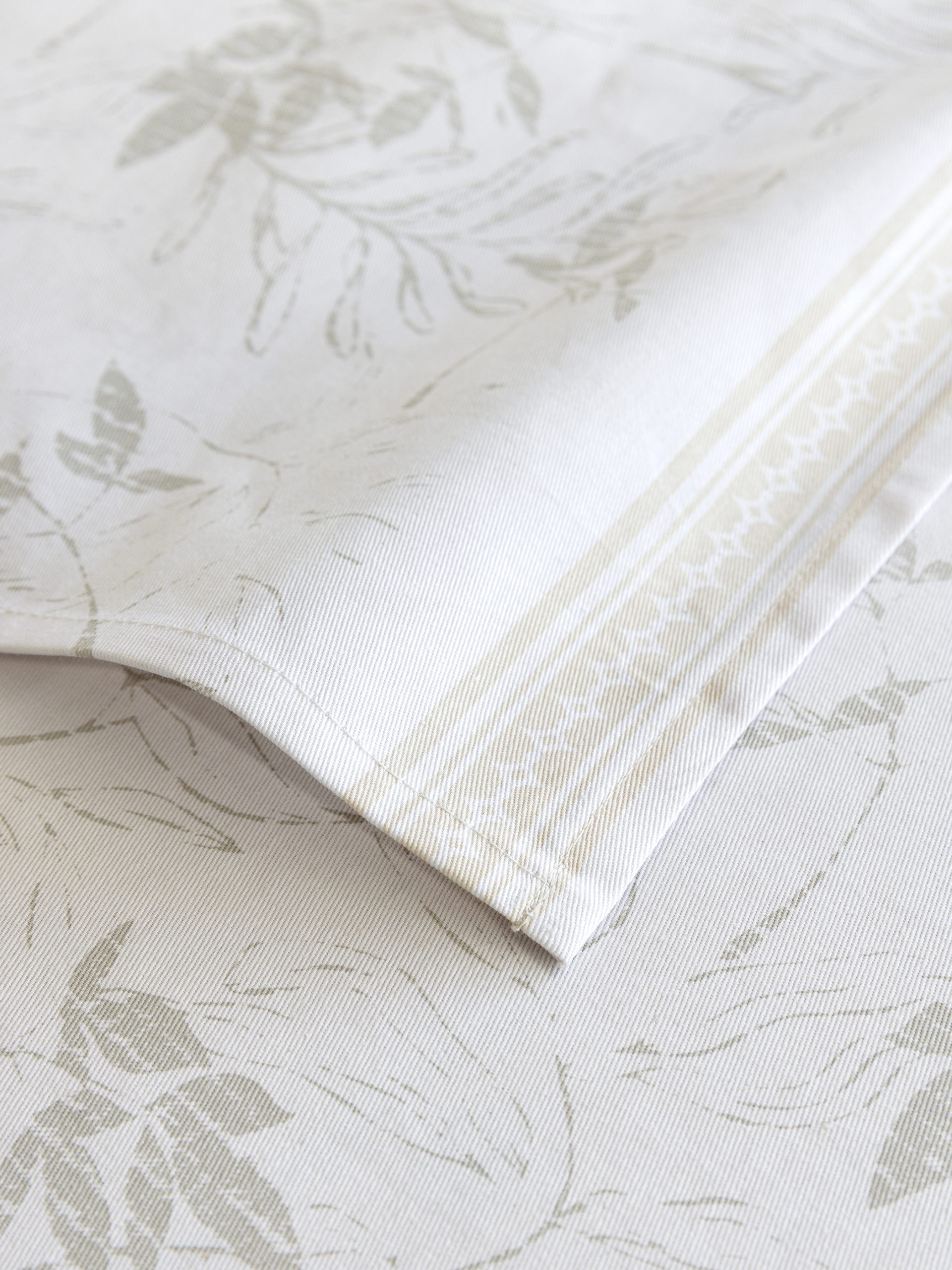 Το τραπεζομάντηλο Foliage σε διαχρονικές και πάντα επίκαιρες αποχρώσεις του μπεζ έχει ένα minimal floral μοτίβο με ζωγραφική απόδοση, που ολοκληρώνεται με μια λιτή γραμμική φάσα στις δύο μακριές του πλευρές. Είναι ιδανικό για όσους επιλέγουν να διακοσμήσουν τον χώρο τους με ρομαντική διάθεση, που έχει επανέλθει στην κορυφή των προτιμήσεων στην μόδα του σπιτιού. Θα ξεχωρίσει αμέσως, διαμορφώνοντας ένα καλαίσθητο χώρο, ιδανικό για την ώρα του φαγητού. Προσφέρεται σε τέσσερις διαστάσεις ανάλογες με το μέγεθος του τραπεζιού.