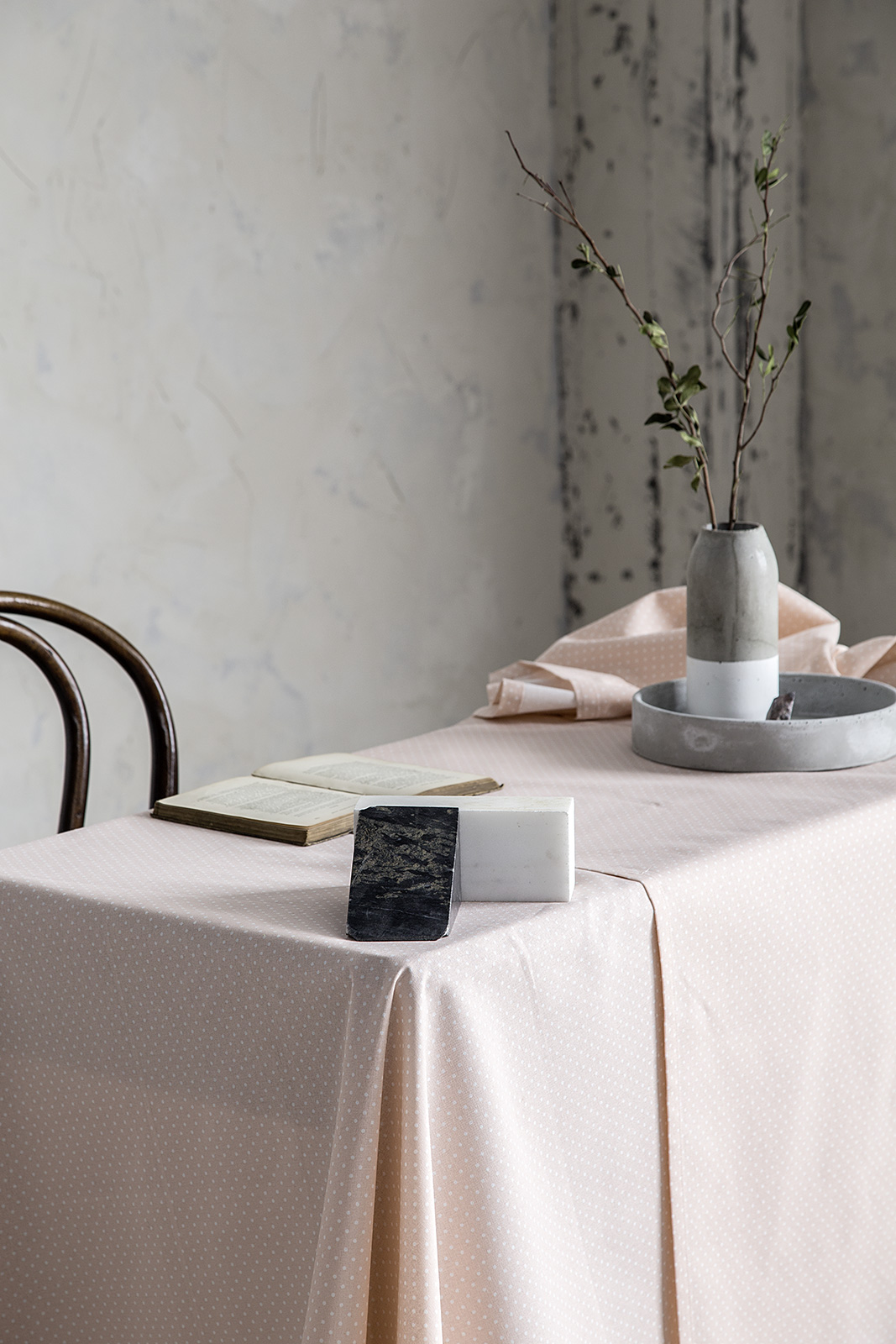Το τραπεζομάντηλο Airy έχει μοντέρνο σομόν χρώμα με μίνιμαλ τύπου πουά λευκό μοτίβο. Η εξαιρετική ποιότητα κατασκευής και το διαχρονικό σχέδιό του θα το κρατήσουν στο τραπέζι μας για αρκετά χρόνια. Χάρη στα φωτεινά και παστέλ χρώματά του είναι πολύ εύκολο να ταιριάξει με διαφορετικούς τύπους διακόσμησης και υλικών, όπως για παράδειγμα το ξύλο, το γυαλί, το μέταλλο ή το μοντέρνο τσιμέντο, φέρνοντας μια εικόνα ανεπιτήδευτης αισθητικής στο χώρο.