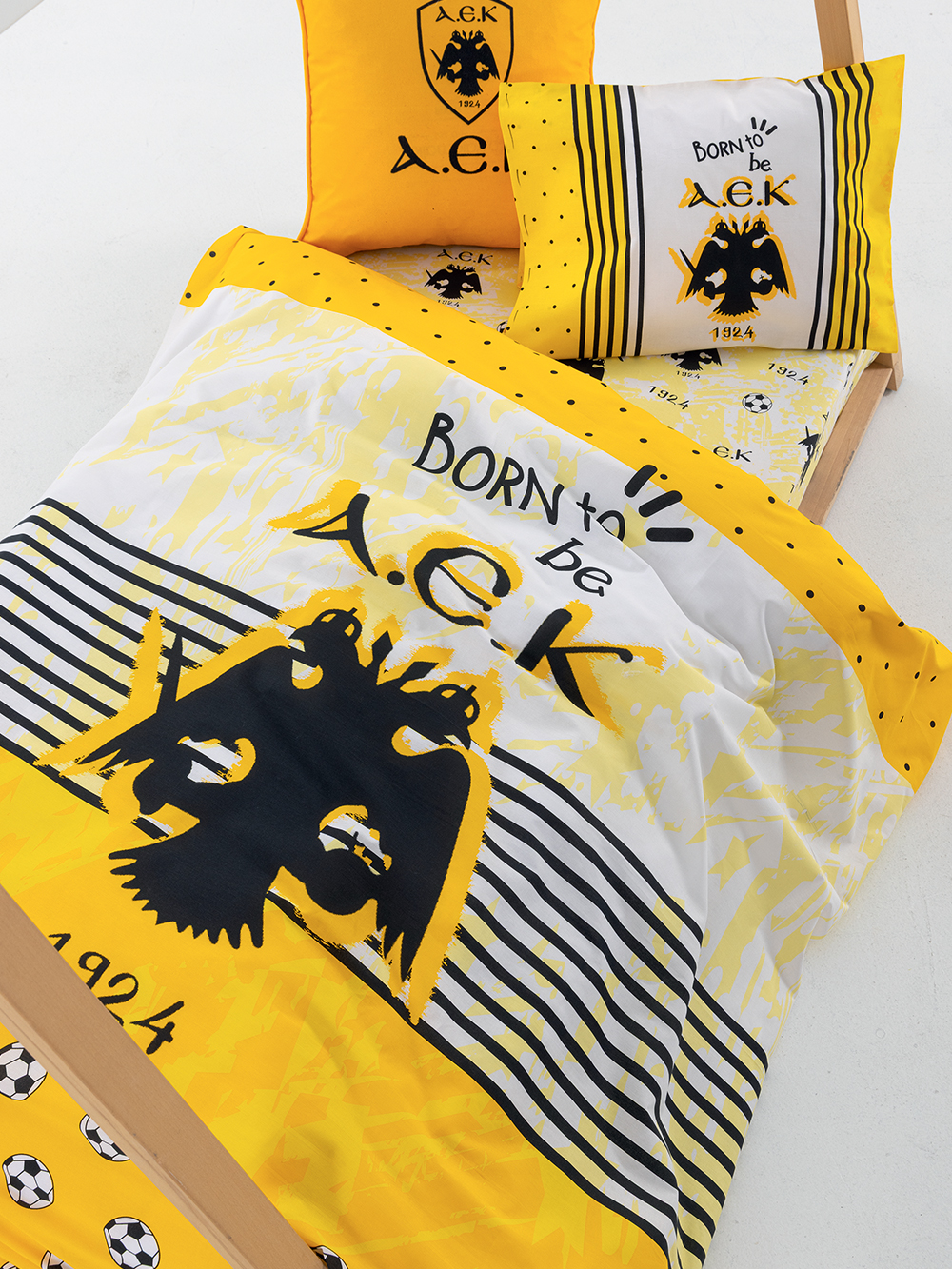 Σετ Σεντόνια Βρεφικά Official Team Aek 1924 130x170 Aek9 από ύφασμα 100% βαμβάκι digital print 144 κλωστών ανά τ. ίντσα. Το κατωσέντονο με λάστιχο διατίθεται σε διάσταση 70x140+15.