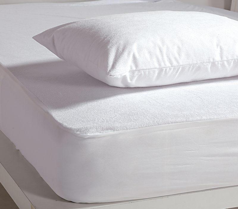 Η πάνω πλευρά είναι κατασκευασμένη από πετσετέ ύφασμα 80% βαμβάκι και 20% πολυέστερ, ενώ η κάτω είναι εμποτισμένη με πολυουρεθάνη που το κάνει αδιάβροχο 100% για την προστασία του στρώματος από κάθε μορφής λεκέδες και υγρά και δεν επιτρέπει στην σκόνη να διεισδύσει σε αυτό.