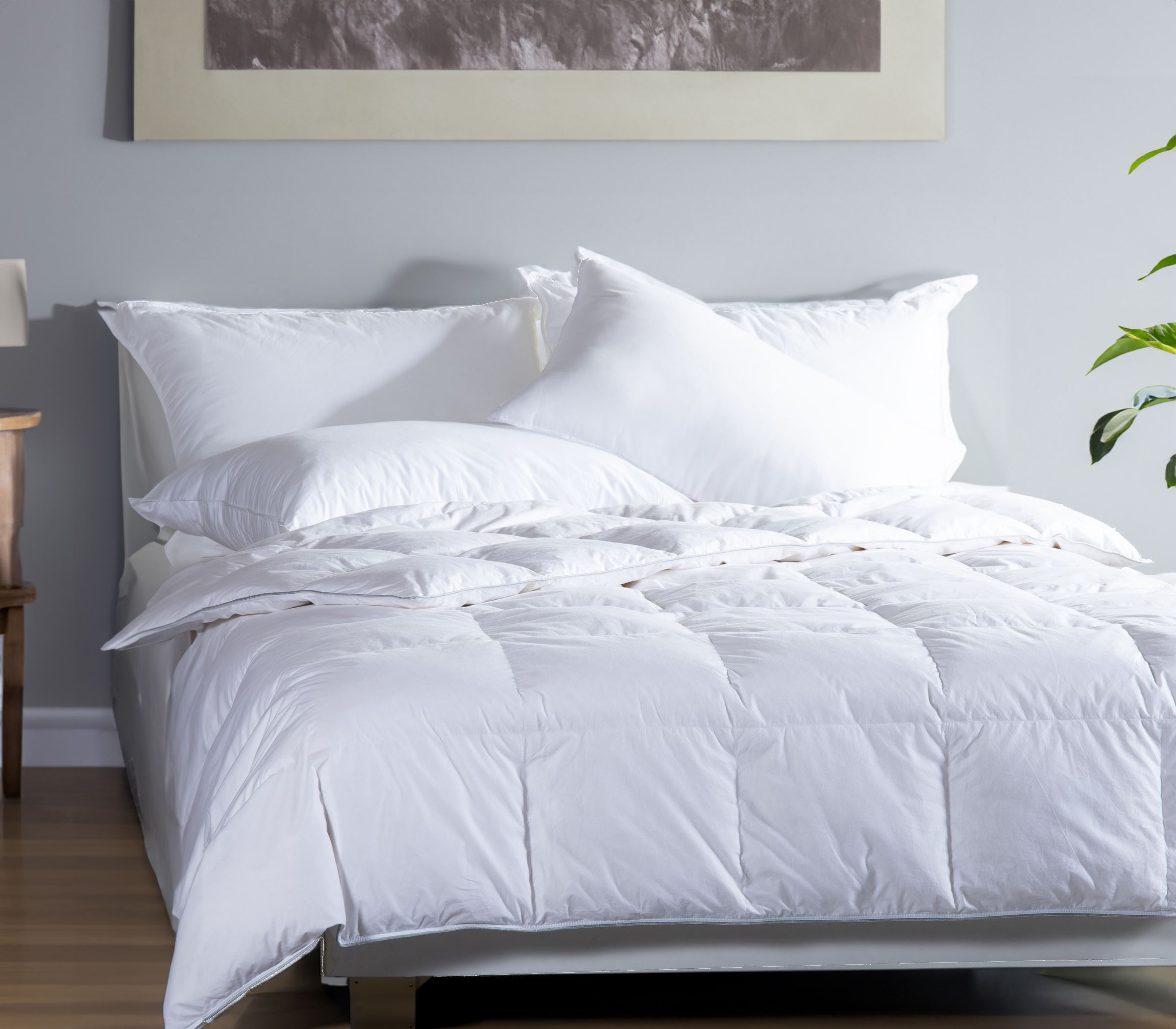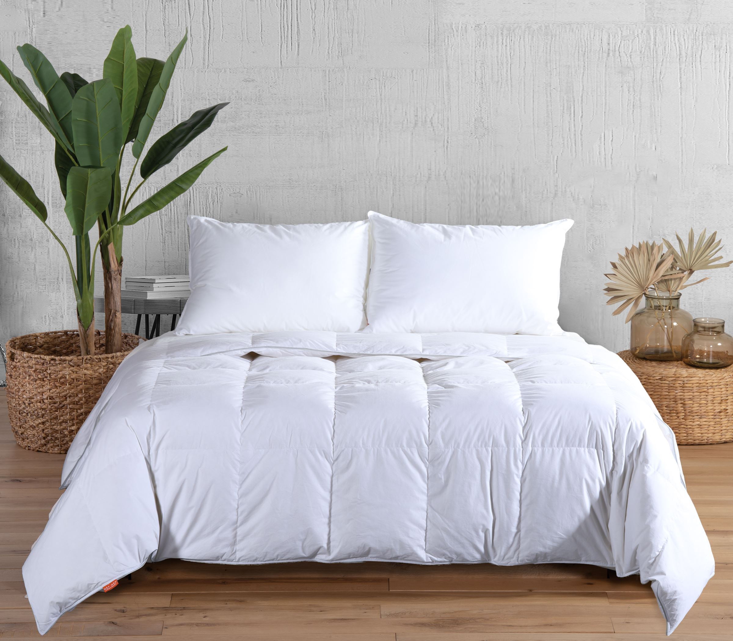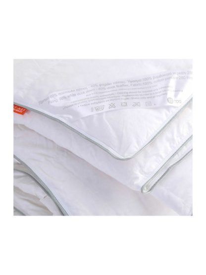 Με εσωτερικό γέμισμα από 60% πούπουλο πάπιας και 40% φτεράκι και με εξωτερικό ύφασμα από 100% βαμβακερό περκάλι, 300 κλωστών.