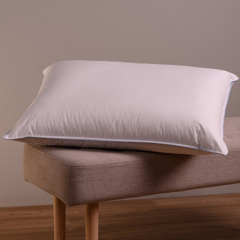 Βαμβακερό μαξιλάρι ύπνου σε διάσταση 50Χ70, με γέμιση 1050gr και ανοιχτό μπλε ρέλι περιμετρικά. Το εξωτερικό ύφασμα είναι 100% Βαμβάκι περκάλι 233 κλωστών και το εσωτερικό του είναι 100% Microbiber 3D.