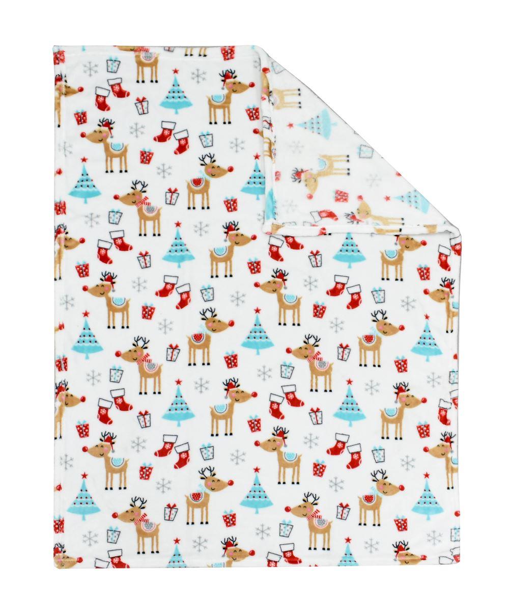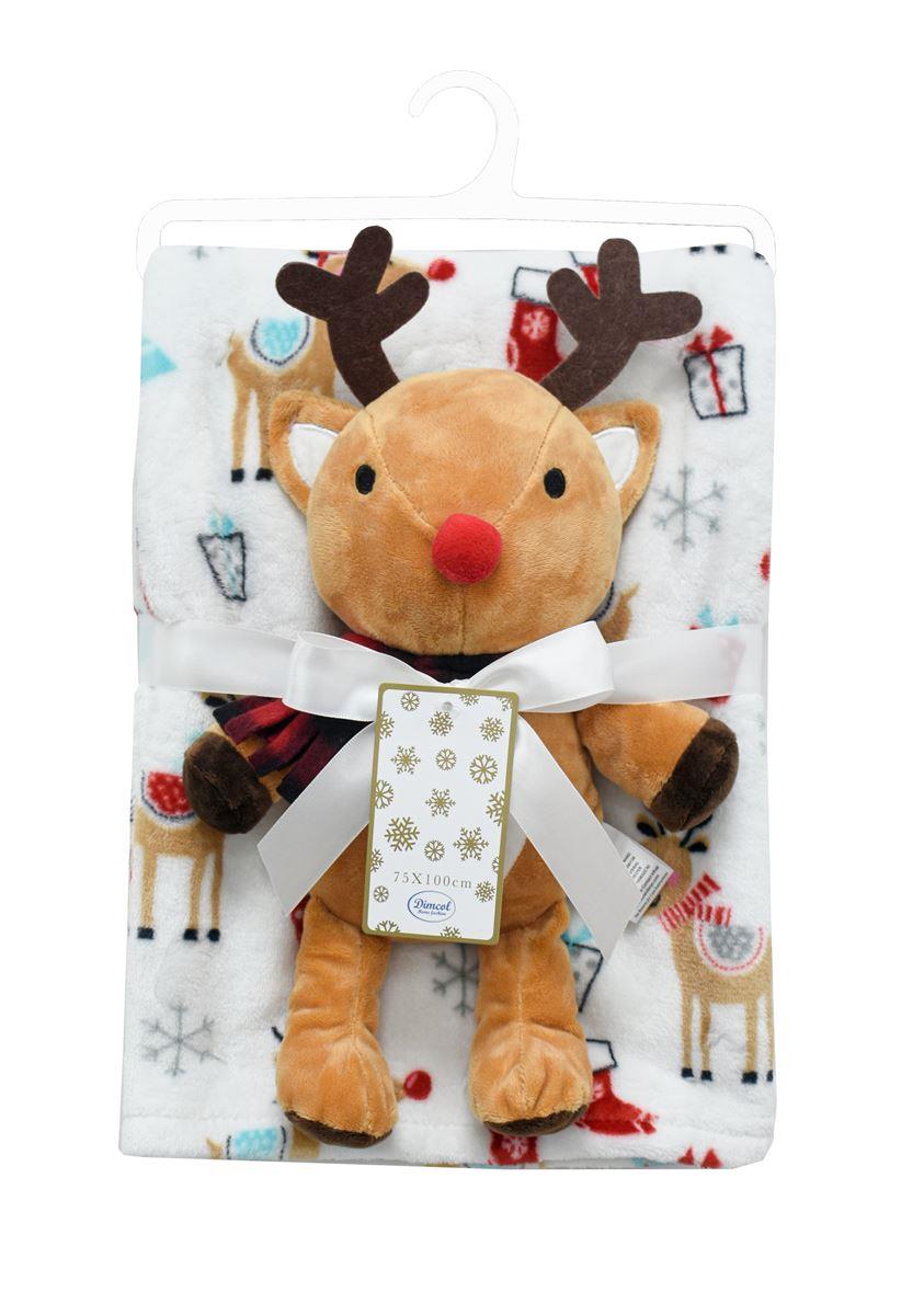 DIMcol Χριστουγεννιάτικο Λούτρινο Σετ 2 Τεμ. bebe Reindeer 28 Ύψος 30 cm & Κουβέρτα Coral Fleece 75X100cm White 100% Polyester