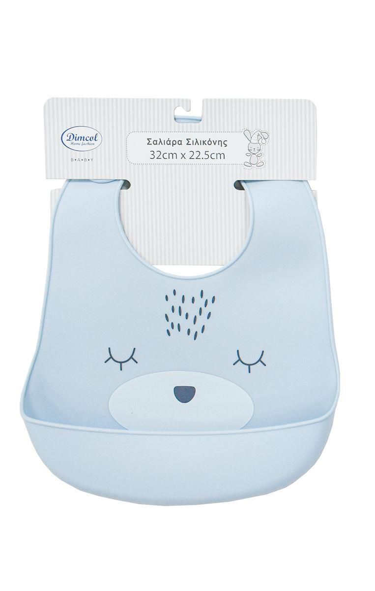 DIMcol Σαλιάρα Σιλικόνης bebe με Κουμπί & Τσέπη 18 22.5X32 Sky Blue 100% Silicone