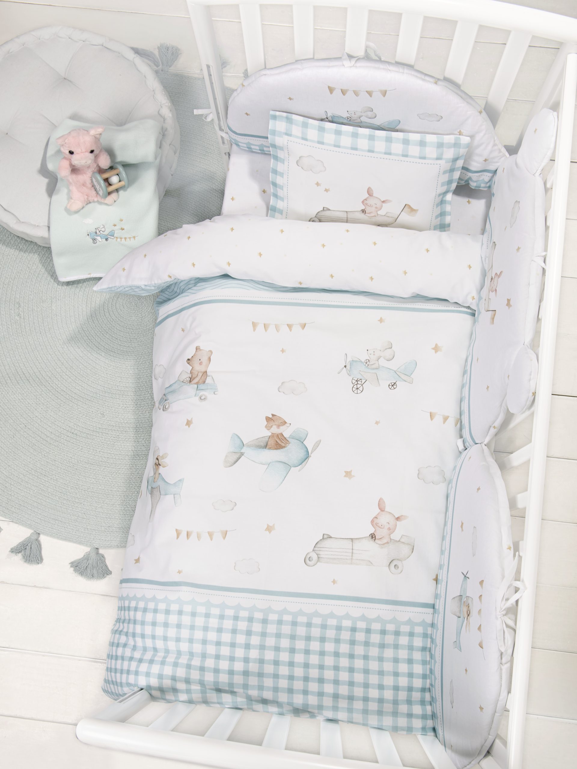 Nima Bebe Σετ Παπλωματοθήκη Κούνιας - Joy Ride Λευκό, Γαλάζιο