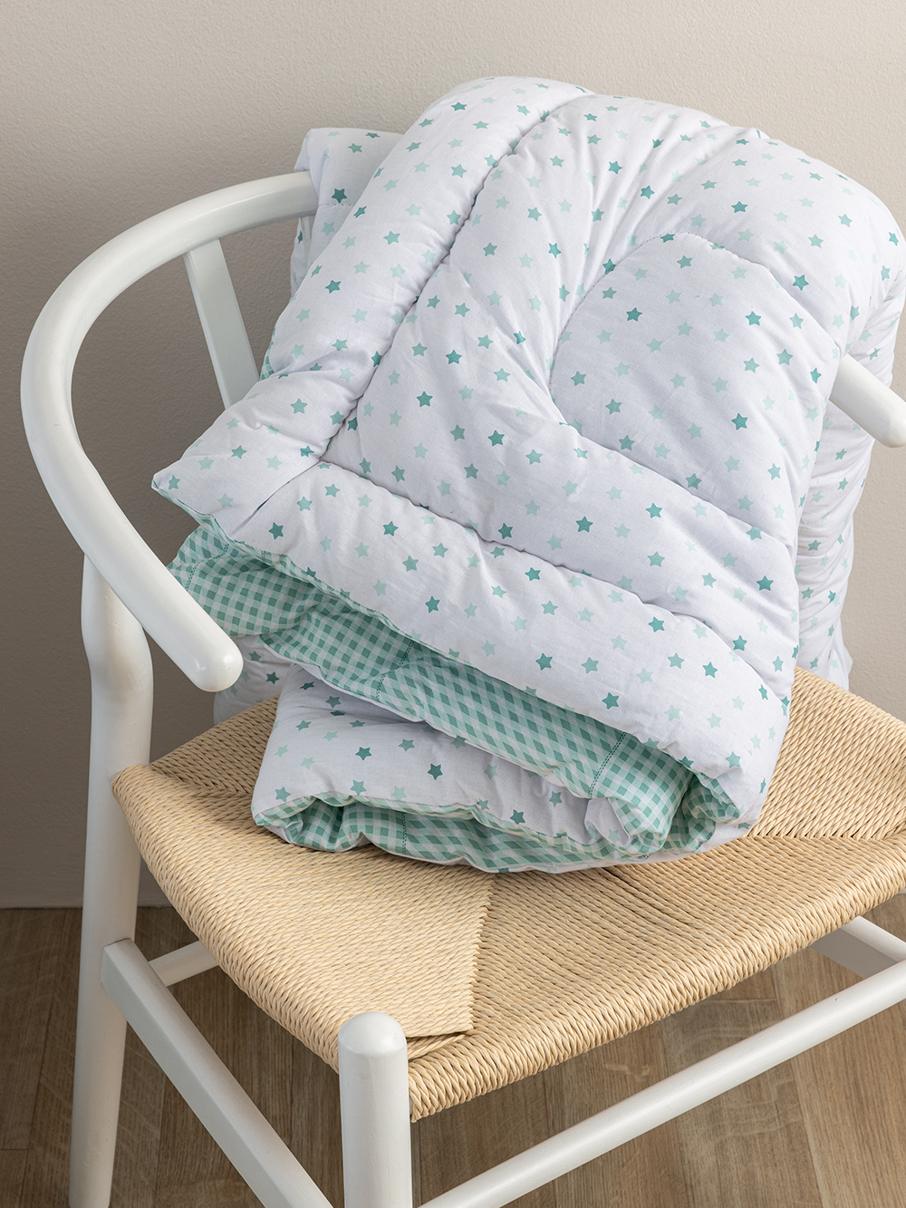 Πάπλωμα Κούνιας Bon Bon 110x150 BB100-BB101 διπλής όψης, καρό - αστεράκι σχέδιο, από ύφασμα 100% cotton 144 κλωστών ανά τ. ίντσα και εσωτερική γέμιση 100% polyester fill.