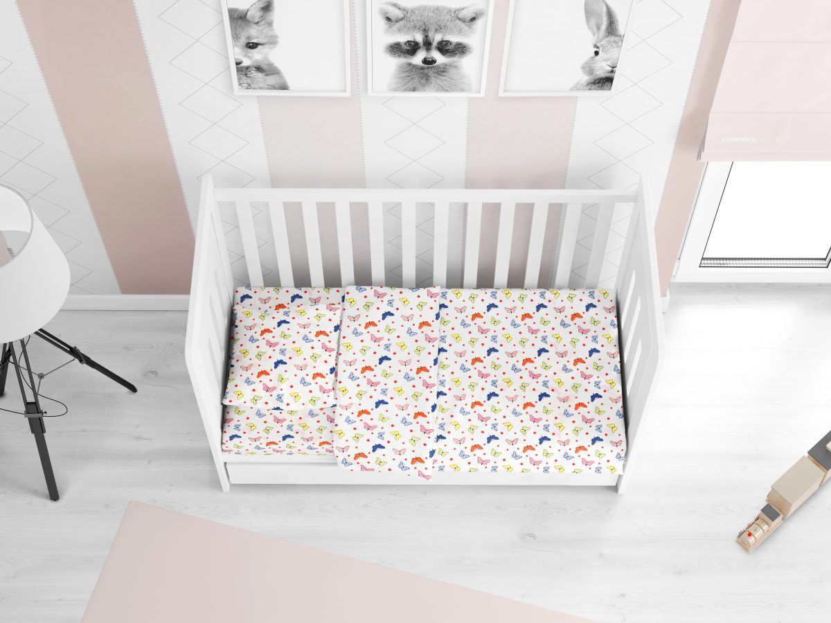 Σετ 3 τεμαχίων που περιέχει: Βρεφικά Σεντονάκια 120Χ160 κούνιας 2 τεμ. και 1 τεμ Μαξιλαροθηκη 35Χ45.Ύφασμα βαμβακι 100% TC 144 Εμπριμέ με χαρούμενα χρώματα και παραστάσεις-Συσκευασία Δώρου Κουτί Πολυτελείας