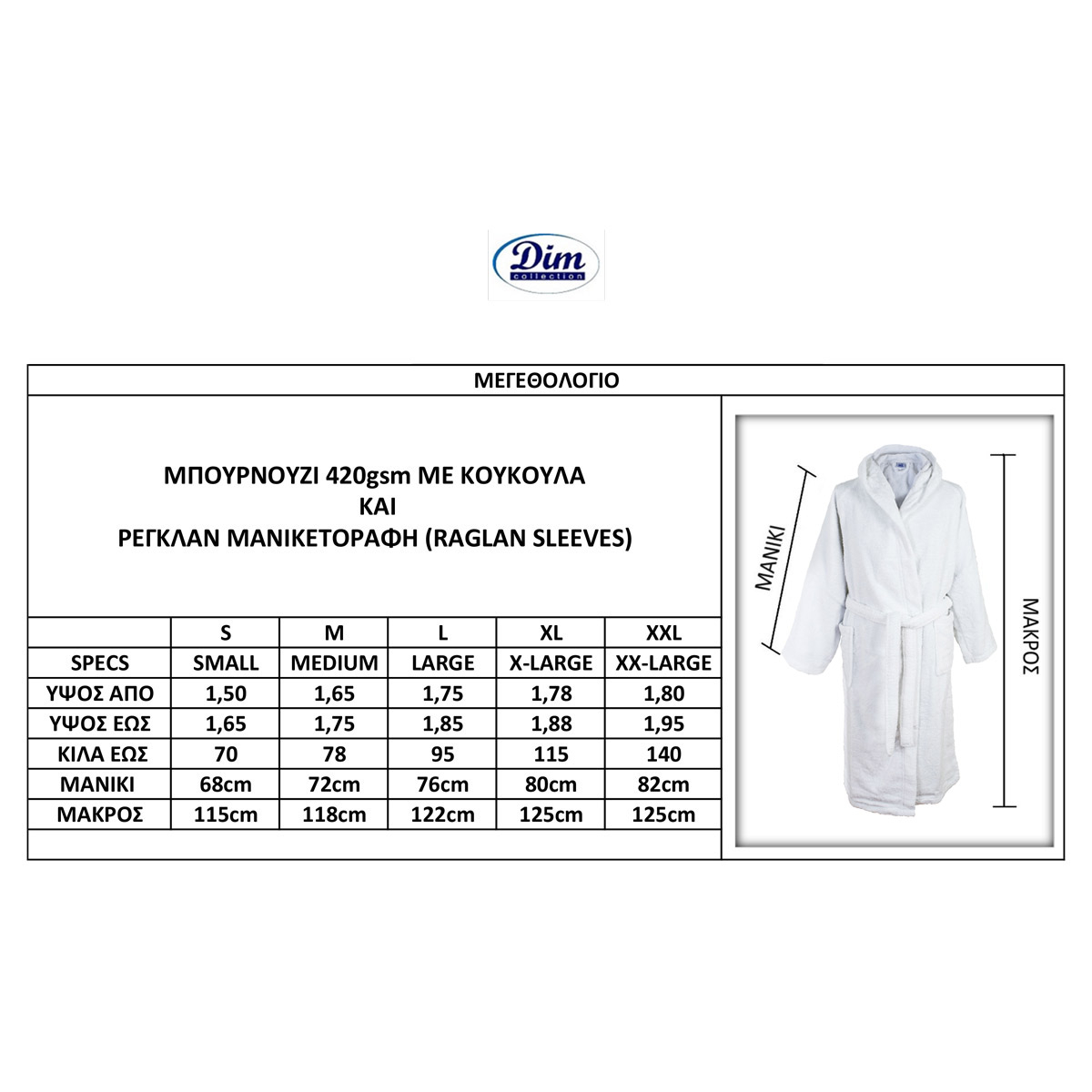 Μπουρνούζι με κουκούλα-Πετσέτα 420 gsm υψηλής απορροφητικότητας με Raglan μανίκια-Συσκευασία Polybag