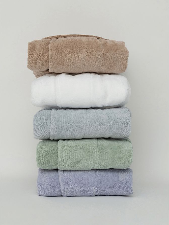 Μπουρνουζι Bathrobe Collection SIMOUR από ύφασμα 55% βαμβάκι - 45% polyester 300 γραμμαρίων ανά m². Έχει απαλή βελουτέ αίσθηση, ιδανικό για χρήση ως ρόμπα, ενώ είναι αποροφήτικό και ως μπουρνούζι.