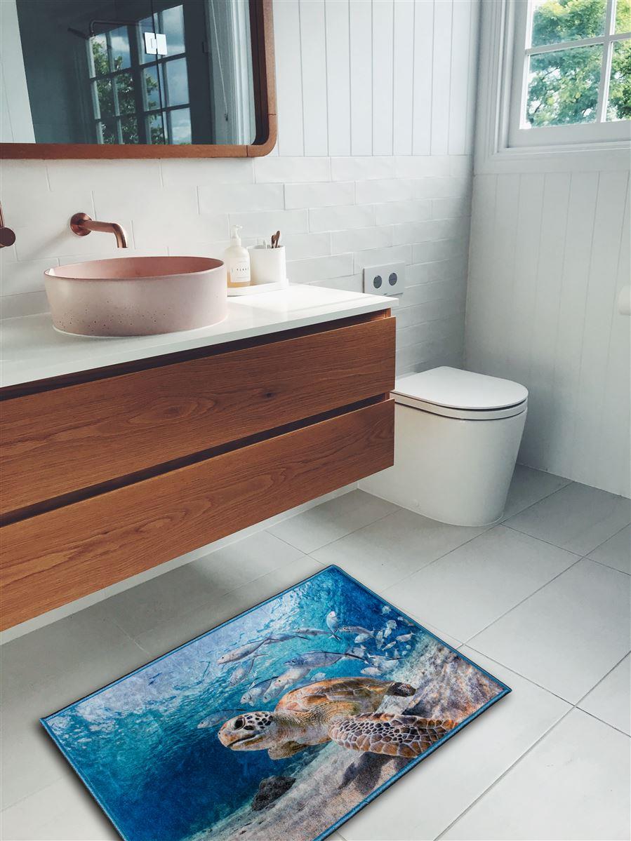 Πατάκι, με εντυπωσιακή απεικόνιση σχεδίων, ψηφιακής εκτύπωσης, για να διακοσμήσετε το μπάνιο και άλλους χώρους του σπιτιού σας. Αντιολισθητικό επίστρωμα Dots Backing, πρωτοποριακή σχεδίαση, πρακτικό στη χρήση. Πλένεται εύκολα και στο πλυντήριο.