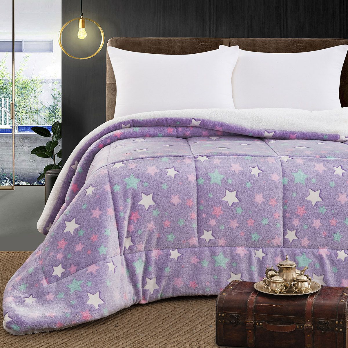 Χαρίστε χαμόγελα και ζεστασιά στα παιδιά με το φωσφοριζέ κουβερτοπάπλωμα Glow σε διάσταση 160x220 με sherpa .