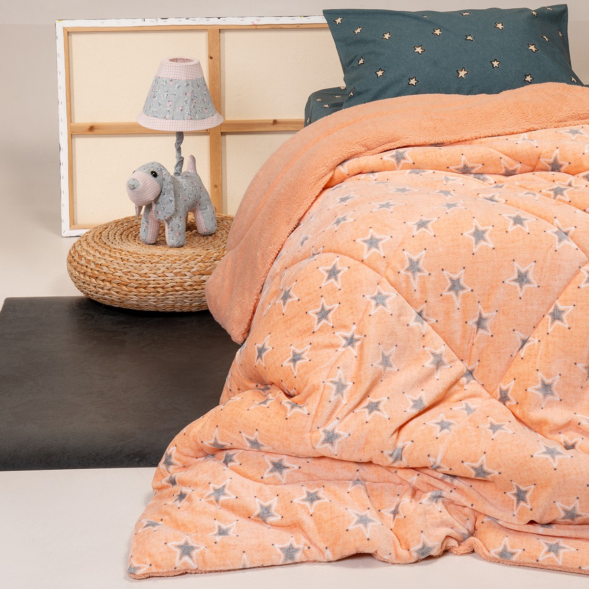 Παιδικό κουβερτοπάπλωμα Mini Stars με μοντέρνο σχέδιο με αστέρια. Κατασκευασμένο από Flannel & Sherpa, αποτελεί το ιδανικό σκέπασμα για τους χειμερινούς μήνες του χρόνου. Προσφέρει ζεστασιά & απαλότητα και είναι ανθεκτικό στις συχνές πλύσεις. Διατίθεται σε δυο αποχρώσεις, μια για αγόρι και μια για κορίτσι.