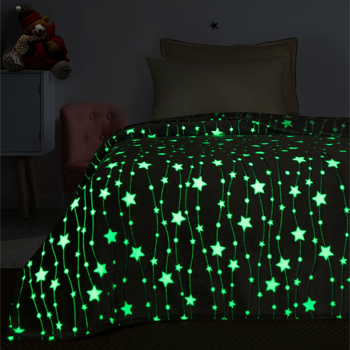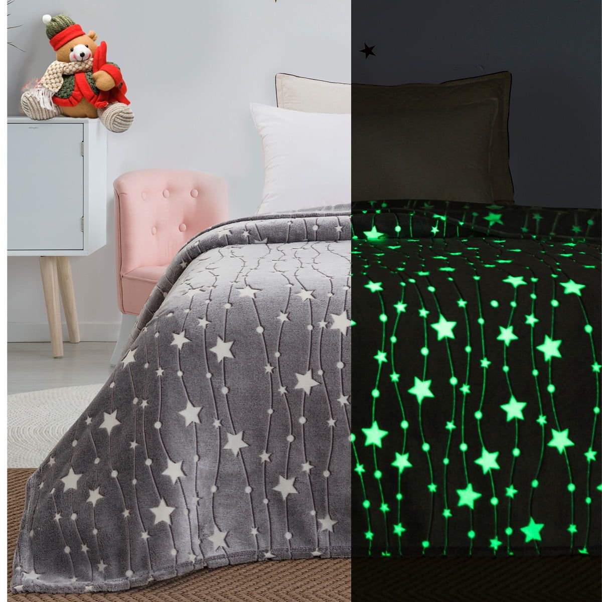 Η νέα μας κουβέρτα Flash-Fleece κατασκευάζεται από μαλακό φλις και φωσφορίζει στο σκοτάδι για να σας παρέχει ζεστασιά και παιδικά γέλια κάθε βράδυ!
