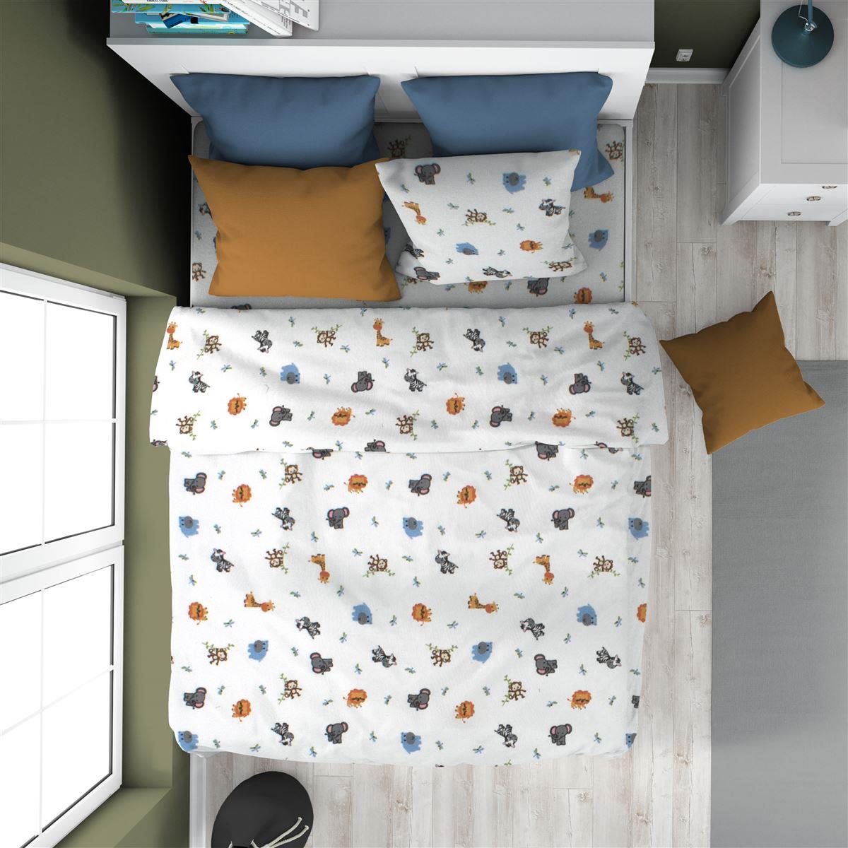 Παιδική παπλωματοθήκη με φερμουάρ και χαρούμενες παιδικές παραστάσεις, διαστάσεων 160Χ240 cm. Κατασκευασμένη από 100% βαμβακερό φανελένιο ύφασμα 144 κλωστών. Κατασκευάζεται στην Ελλάδα. Συσκευασία Polybag.