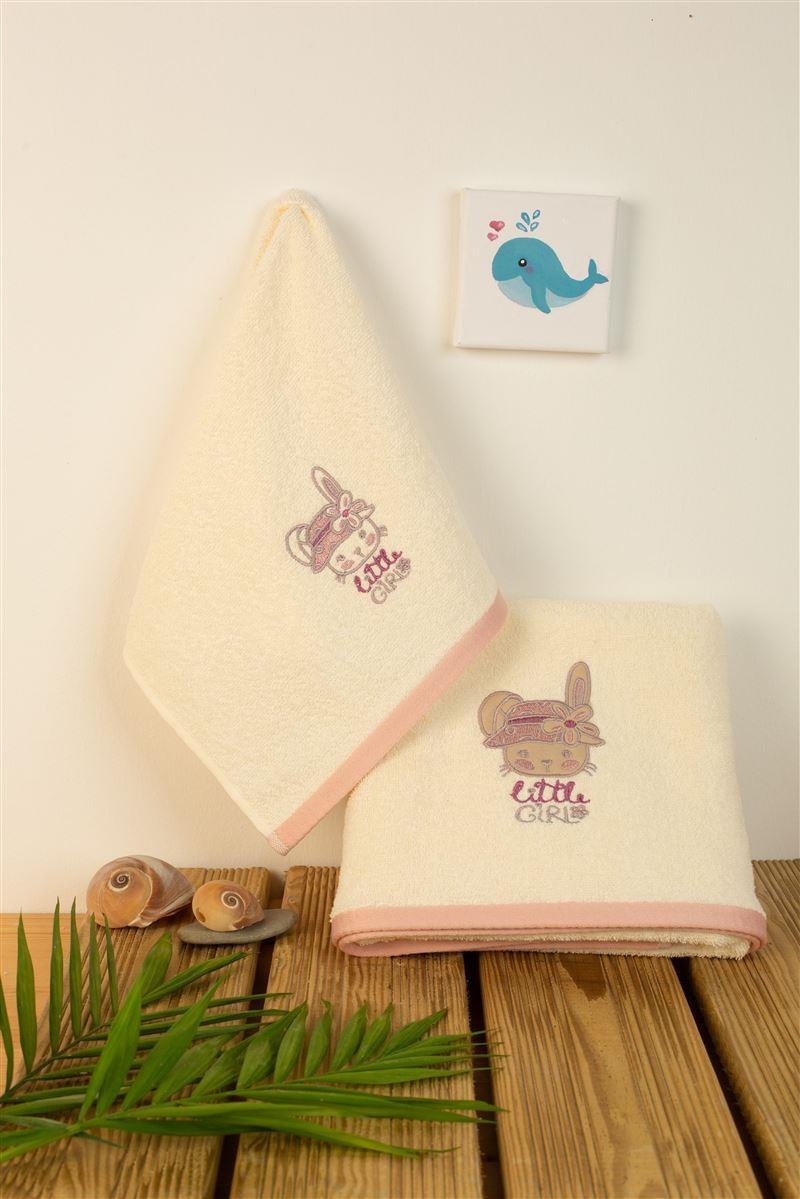 DIMcol ΠΕΤΣΕΤΑ Με Κέντημα Σετ 2 τεμ bebe Rabbit Girl 148 30X50,70X140 Εκρού 100% Cotton
