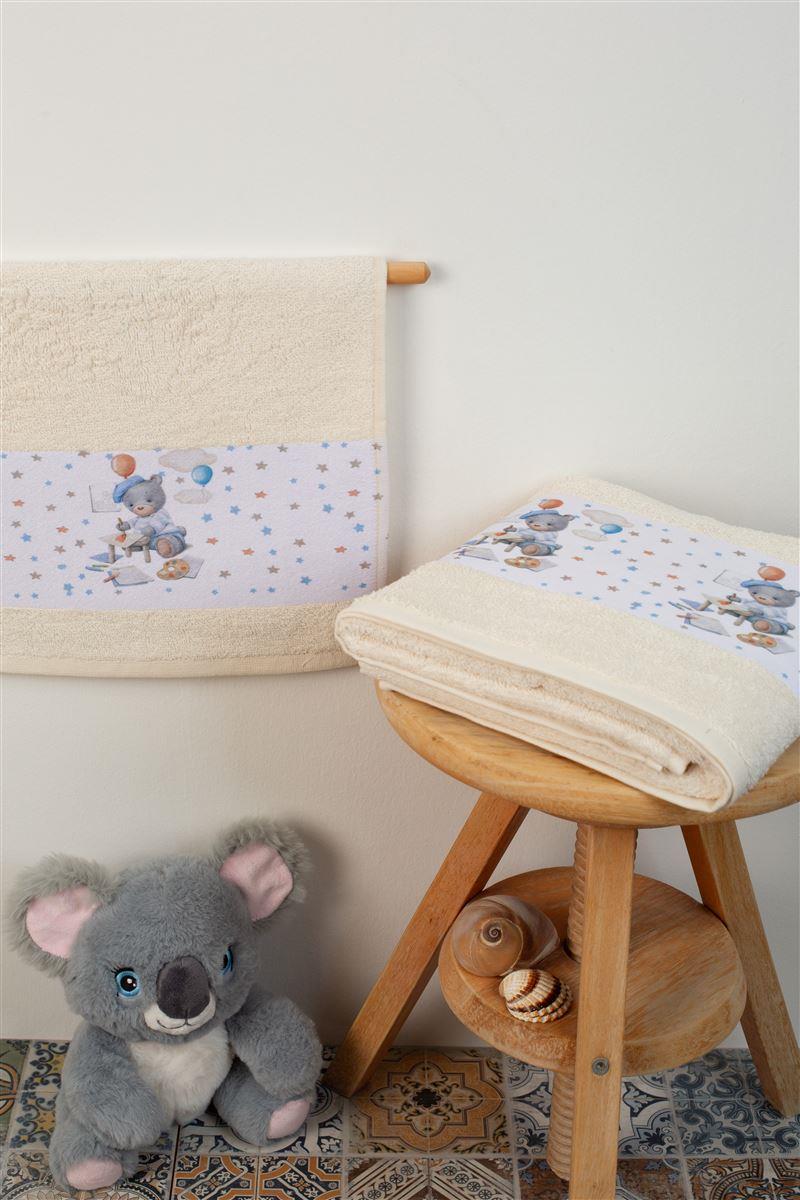 Σετ βρεφικές πετσέτες μπάνιου που περιέχει : 1 τεμάχιο πετσέτα χειρός διαστάσεων 30X50 cm και 1 τεμάχιο πετσέτα μπάνιου διαστάσεων 70X140 cm. Οι πετσέτες έχουν υφασμάτινη φάσα με ψηφιακά τυπωμένα χρωματιστά σχέδια και είναι κατασκευασμένες από 100% βαμβάκερη πετσέτα 400 gsm, υψηλής απορροφητικότητας. Συσκευασία Δώρου Κουτί Πολυτελείας.