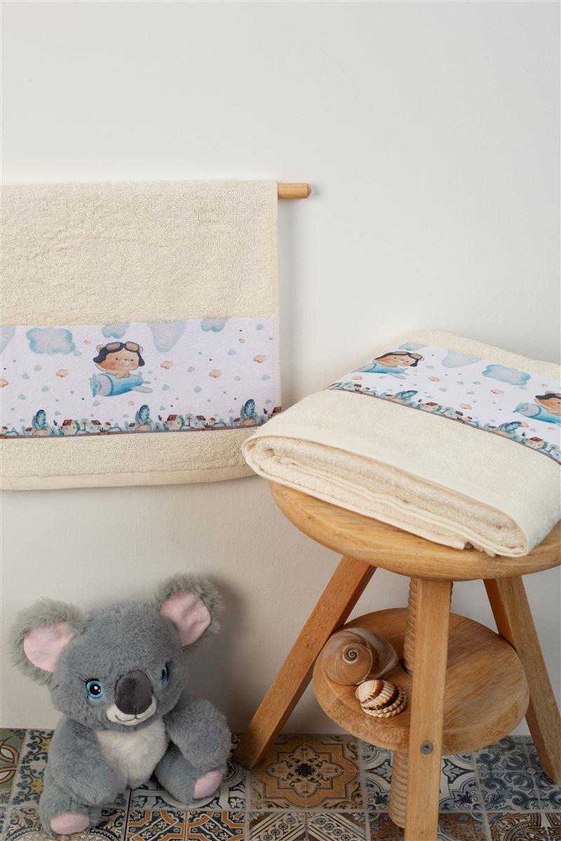 DIMcol ΠΕΤΣΕΤΑ Με Ψηφιακή Εκτύπωση Σετ 2 τεμ bebe Pilot 120 30X50,70X140 Εκρού 100% Cotton