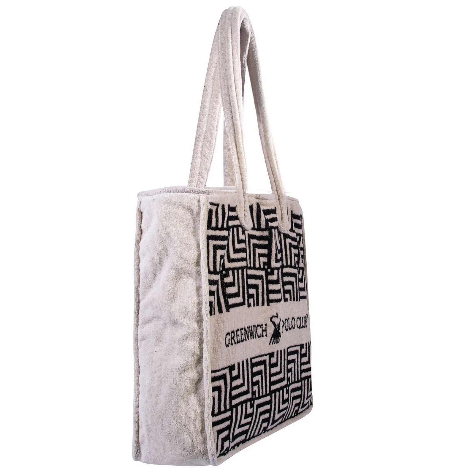 Τσάντα θαλάσσης με κρόσια Greenwich Polo Club σε διάσταση 42X45εκ. Είναι υποαλλεργική, απορροφητική και ανθεκτική στη χρήση. Η σύνθεσή της είναι από 100% βαμβάκι σε ύφανση jacquard και βάρος 400gr/m2. Επιλέξτε τσάντες θαλάσσης Greenwich Polo Club σε μοντέρνα σχέδια και χρώματα για τις εμφανίσεις σας στην παραλία.