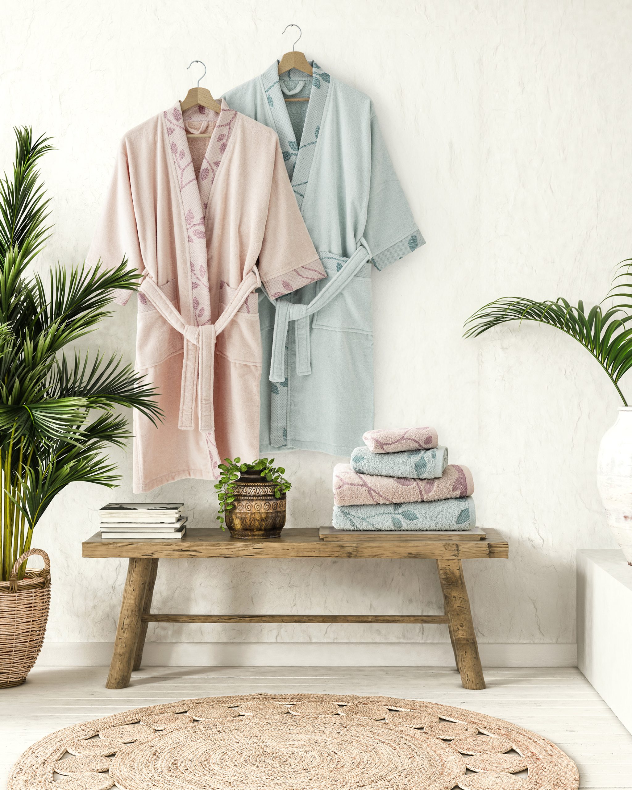 Η συσκευασία περιέχει: Nima Home Μπουρνούζι Κιμονό με 3/4 Μανίκι Abrazo - Small - Aqua Mint Σιέλ, Μέντα 100% Velour Cotton, 250 gsm