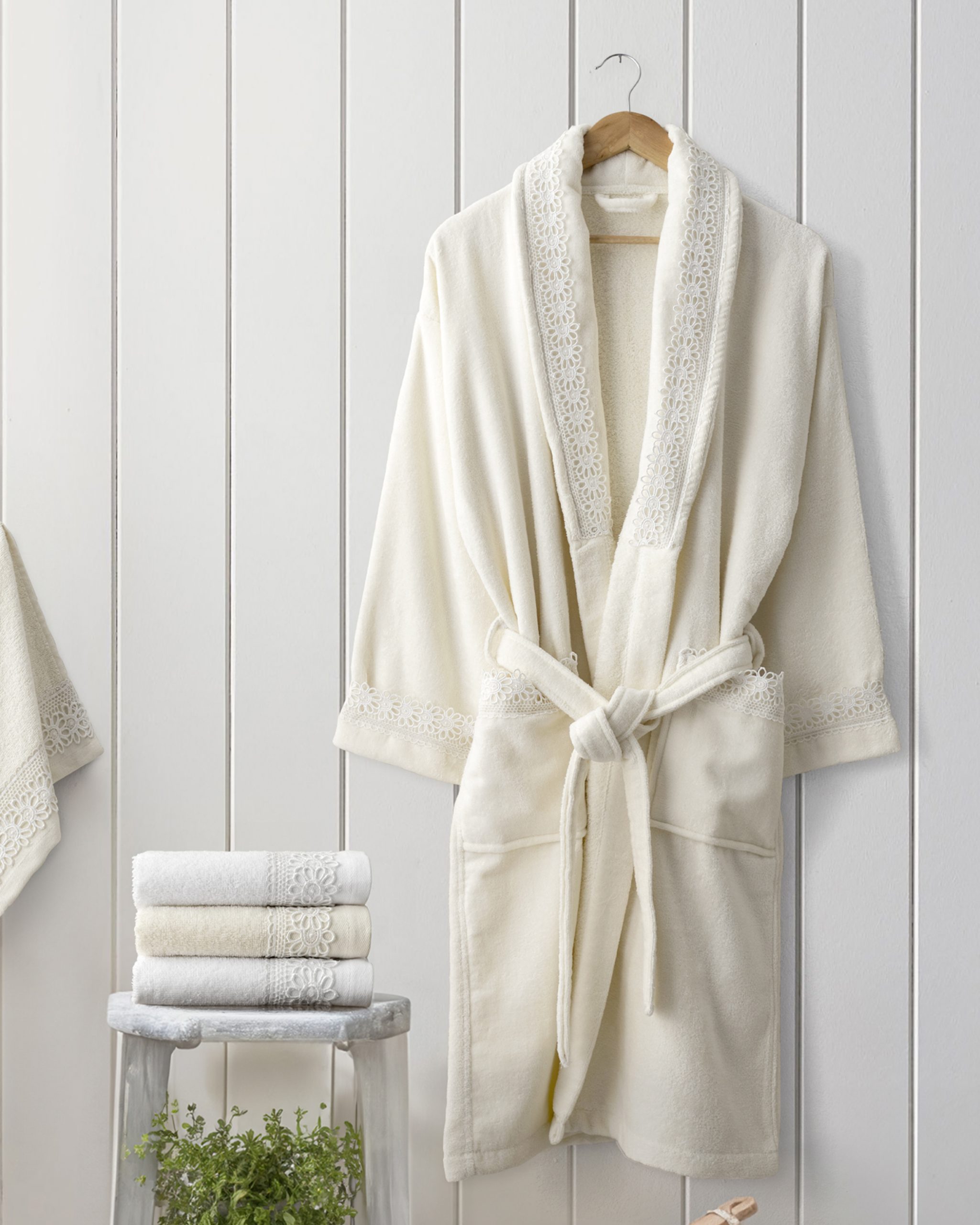 Η συσκευασία περιέχει: Nima Home Μπουρνούζι Seren - Small - Ivory Εκρού 100% Velour Cotton, 380 gsm